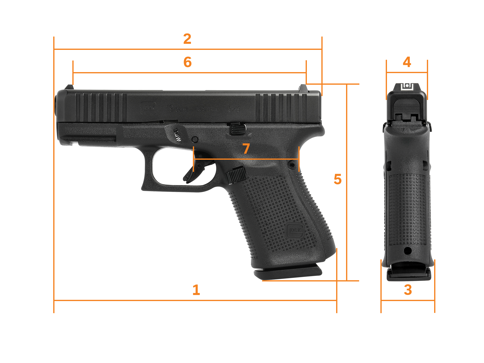A pistola GLOCK 19 Gen5 em 9 mm Luger é ideal para um porte mais versátil devido às suas dimensões reduzidas. O novo design de armação sem ranhuras dos dedos ainda permite personalizar instantaneamente sua empunhadura para acomodar qualquer tamanho de mão através de diferentes punhos de armação.