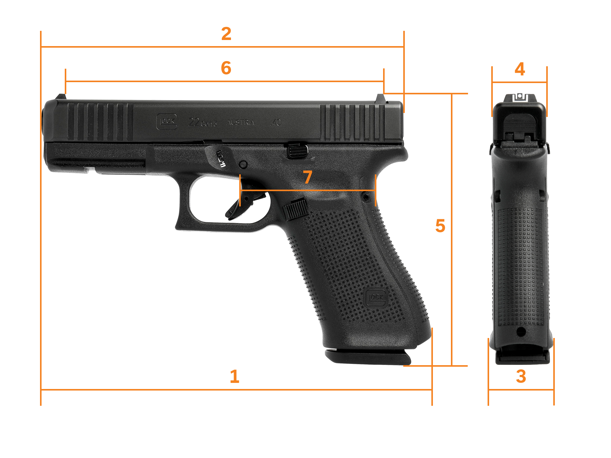 Com o lançamento do modelo G22 Gen5 de tamanho grande, a mais nova geração da GLOCK agora está disponível em 40 S&W.