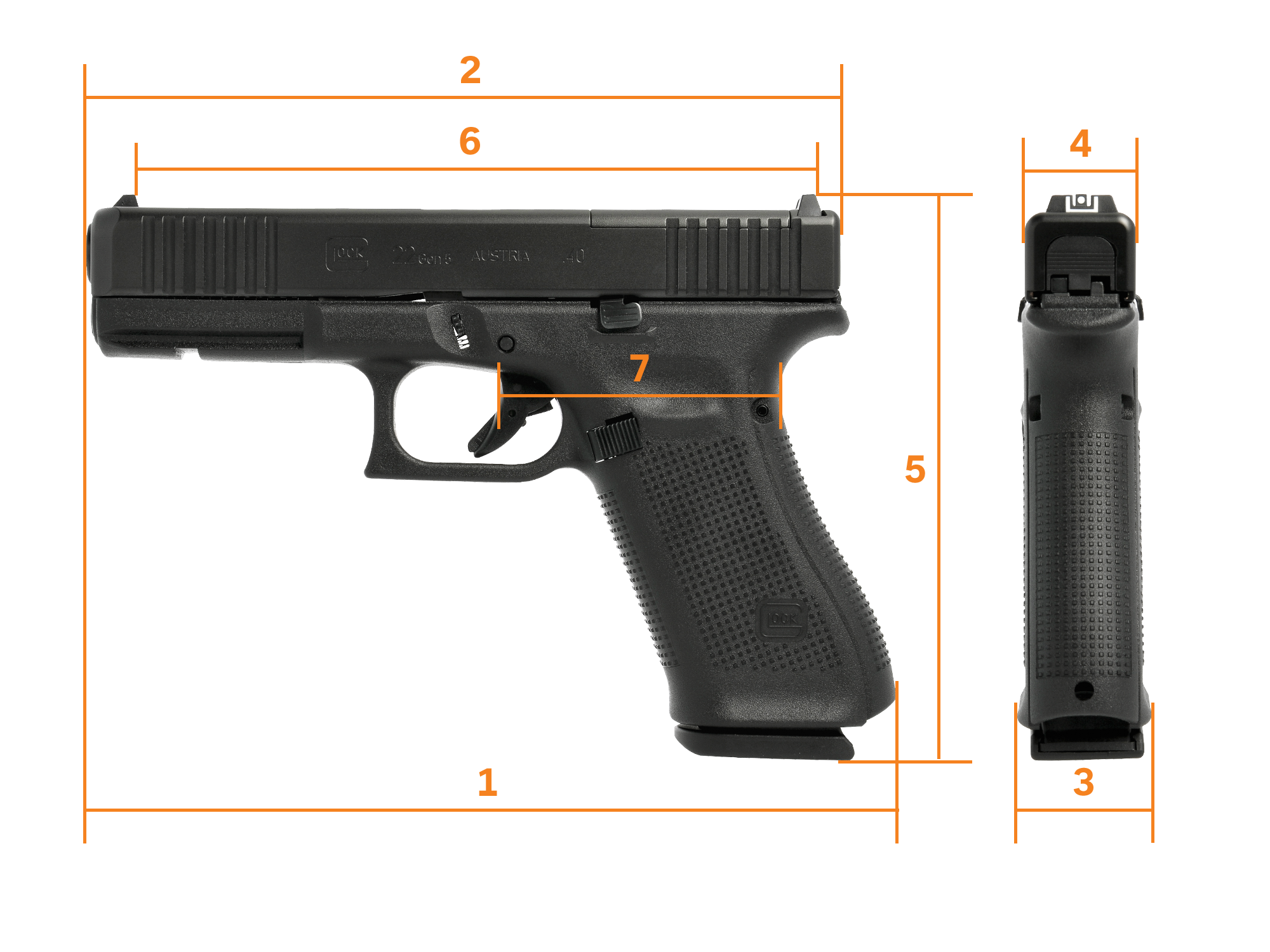 O calibre .40 S&W preenche a lacuna entre os calibres de serviço .45 Auto e 9mm Luger. A nova G22 apresenta as novas tecnologias da Gen5, incluindo o revestimento nDLC – aço com a dureza do diamante, base do carregador prolongada, cano GLOCK Marksman (GMB) para maior precisão e retém do carregador reversível, além da configuração MOS (Sistema Modular Ótico).